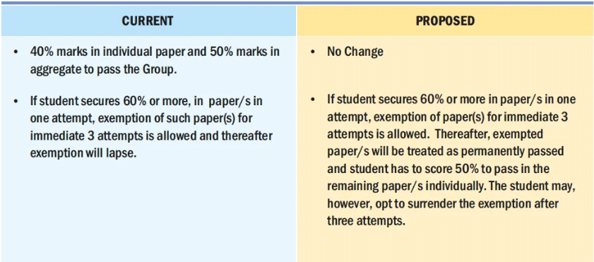 ICAI has made changes in CA final course eligibility, registration validity, new syllabus, pass percentage and exemption which are described as follows: